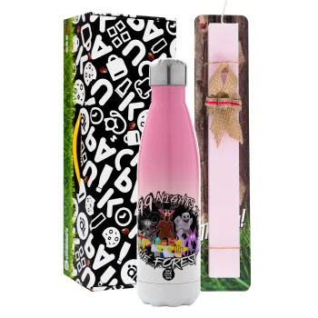 Roblox 99 nights in the forest, Πασχαλινή Λαμπάδα με Μεταλλικό παγούρι θερμός Ροζ/Λευκό (Stainless steel), διπλού τοιχώματος, 500ml & κερί αρωματικό πλακέ (30cm) (ΡΟΖ)