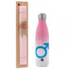 MALE, Πασχαλινή Λαμπάδα με Μεταλλικό παγούρι θερμός Ροζ/Λευκό (Stainless steel), διπλού τοιχώματος, 500ml & κερί αρωματικό πλακέ (30cm) (ΡΟΖ)