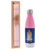 Nasa Space Shuttle, Πασχαλινή Λαμπάδα με Μεταλλικό παγούρι θερμός Ροζ/Λευκό (Stainless steel), διπλού τοιχώματος, 500ml & κερί αρωματικό πλακέ (30cm) (ΡΟΖ)