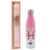 Ζώδια Ιχθύες, Πασχαλινή Λαμπάδα με Μεταλλικό παγούρι θερμός Ροζ/Λευκό (Stainless steel), διπλού τοιχώματος, 500ml & κερί αρωματικό πλακέ (30cm) (ΡΟΖ)