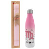 Ζώδια Παρθένος, Πασχαλινή Λαμπάδα με Μεταλλικό παγούρι θερμός Ροζ/Λευκό (Stainless steel), διπλού τοιχώματος, 500ml & κερί αρωματικό πλακέ (30cm) (ΡΟΖ)