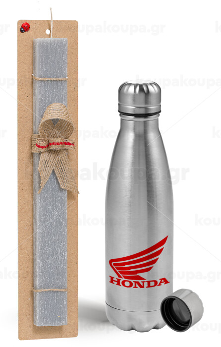 Honda, Πασχαλινή Λαμπάδα με μεταλλικό παγούρι Inox (750ml) & κερί αρωματικό πλακέ (30cm) (ΓΚΡΙ)