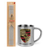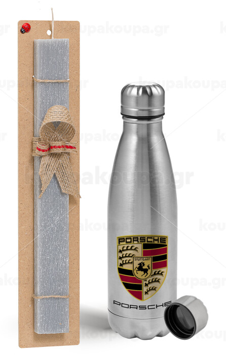 Porsche, Πασχαλινή Λαμπάδα με μεταλλικό παγούρι Inox (750ml) & κερί αρωματικό πλακέ (30cm) (ΓΚΡΙ)