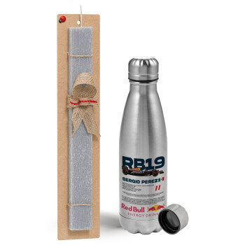 smart, Πασχαλινή Λαμπάδα με μεταλλικό παγούρι Inox (750ml) & κερί αρωματικό πλακέ (30cm) (ΓΚΡΙ)