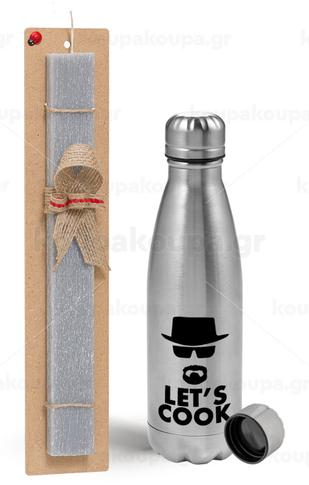 Let's cook, Πασχαλινή Λαμπάδα με μεταλλικό παγούρι Inox (750ml) & κερί αρωματικό πλακέ (30cm) (ΓΚΡΙ)