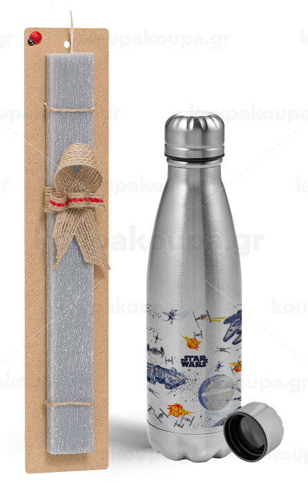 Ο πόλεμος των άστρων, Πασχαλινή Λαμπάδα με μεταλλικό παγούρι Inox (750ml) & κερί αρωματικό πλακέ (30cm) (ΓΚΡΙ)