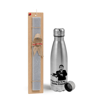 Baby Yoda mandalorian, Πασχαλινή Λαμπάδα με μεταλλικό παγούρι Inox (750ml) & κερί αρωματικό πλακέ (30cm) (ΓΚΡΙ)