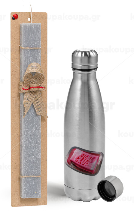 Fight Club, Πασχαλινή Λαμπάδα με μεταλλικό παγούρι Inox (750ml) & κερί αρωματικό πλακέ (30cm) (ΓΚΡΙ)