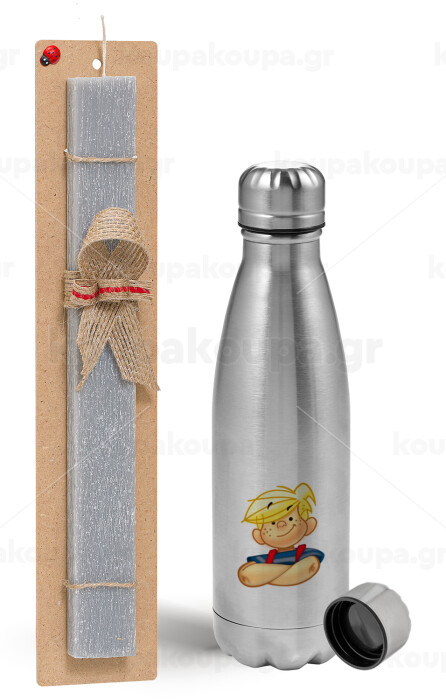 Ντένις ο τρομερός, Πασχαλινή Λαμπάδα με μεταλλικό παγούρι Inox (750ml) & κερί αρωματικό πλακέ (30cm) (ΓΚΡΙ)