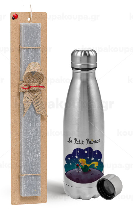 Ο μικρός πρίγκιπας, Πασχαλινή Λαμπάδα με μεταλλικό παγούρι Inox (750ml) & κερί αρωματικό πλακέ (30cm) (ΓΚΡΙ)