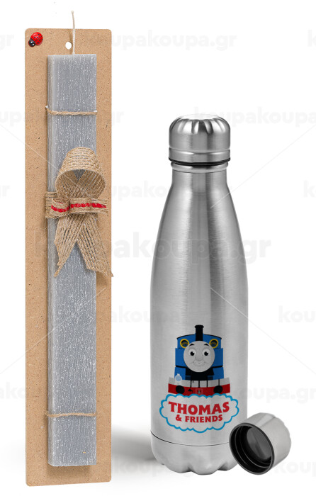 Τόμας το τρενάκι, Πασχαλινή Λαμπάδα με μεταλλικό παγούρι Inox (750ml) & κερί αρωματικό πλακέ (30cm) (ΓΚΡΙ)