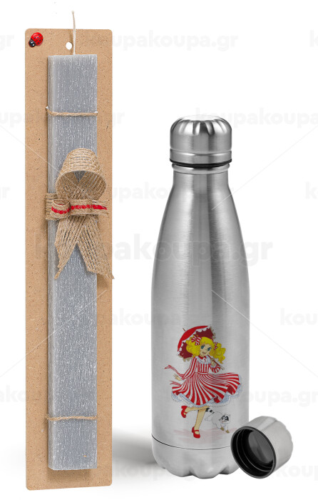 Candy, Πασχαλινή Λαμπάδα με μεταλλικό παγούρι Inox (750ml) & κερί αρωματικό πλακέ (30cm) (ΓΚΡΙ)