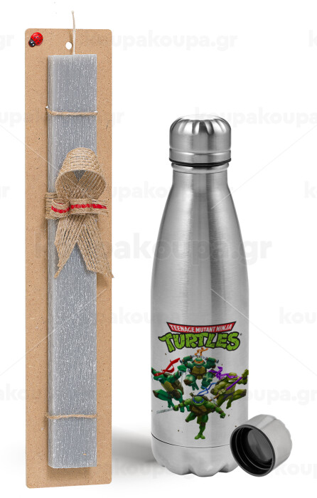 Ninja turtles, Πασχαλινή Λαμπάδα με μεταλλικό παγούρι Inox (750ml) & κερί αρωματικό πλακέ (30cm) (ΓΚΡΙ)