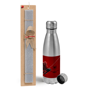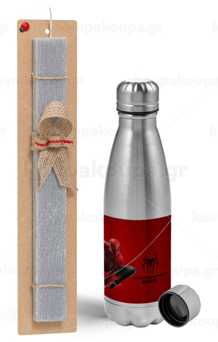 Spiderman, Πασχαλινή Λαμπάδα με μεταλλικό παγούρι Inox (750ml) & κερί αρωματικό πλακέ (30cm) (ΓΚΡΙ)