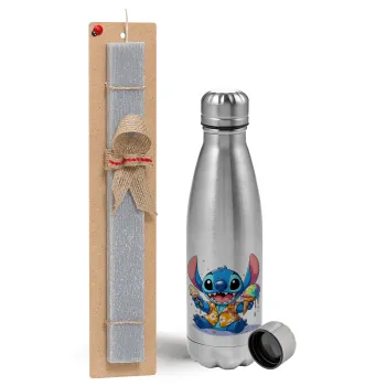 Stitch Ice cream, Πασχαλινή Λαμπάδα με μεταλλικό παγούρι Inox (750ml) & κερί αρωματικό πλακέ (30cm) (ΓΚΡΙ)