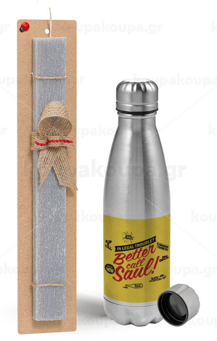 Better Call Saul, Πασχαλινή Λαμπάδα με μεταλλικό παγούρι Inox (750ml) & κερί αρωματικό πλακέ (30cm) (ΓΚΡΙ)