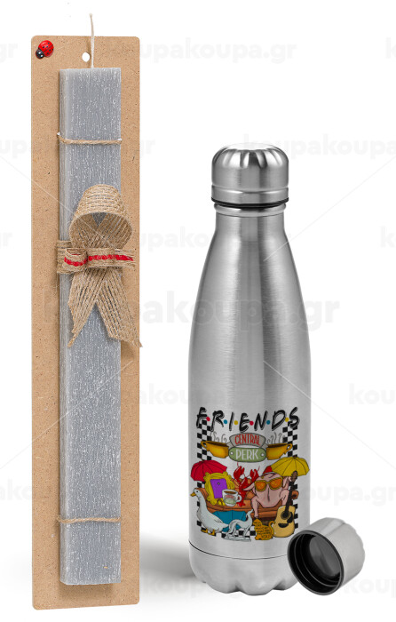 Τα φιλαράκια, Πασχαλινή Λαμπάδα με μεταλλικό παγούρι Inox (750ml) & κερί αρωματικό πλακέ (30cm) (ΓΚΡΙ)