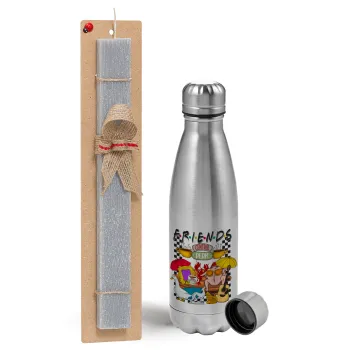 Τα φιλαράκια, Πασχαλινή Λαμπάδα με μεταλλικό παγούρι Inox (750ml) & κερί αρωματικό πλακέ (30cm) (ΓΚΡΙ)