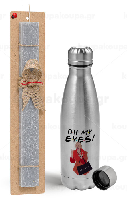 Friends,. oh my eyes Phoebe, Πασχαλινή Λαμπάδα με μεταλλικό παγούρι Inox (750ml) & κερί αρωματικό πλακέ (30cm) (ΓΚΡΙ)