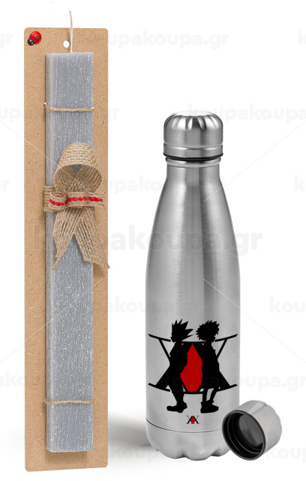 hunter x hunter, Πασχαλινή Λαμπάδα με μεταλλικό παγούρι Inox (750ml) & κερί αρωματικό πλακέ (30cm) (ΓΚΡΙ)