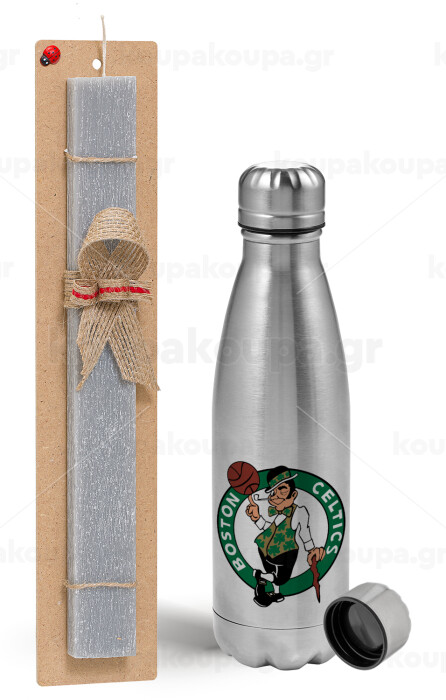Boston Celtics, Πασχαλινή Λαμπάδα με μεταλλικό παγούρι Inox (750ml) & κερί αρωματικό πλακέ (30cm) (ΓΚΡΙ)