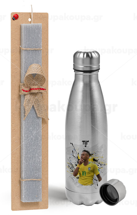 Neymar JR, Πασχαλινή Λαμπάδα με μεταλλικό παγούρι Inox (750ml) & κερί αρωματικό πλακέ (30cm) (ΓΚΡΙ)