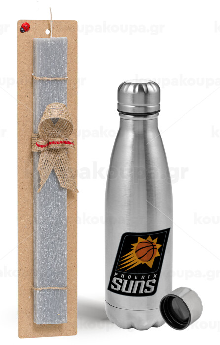 Phoenix Suns, Πασχαλινή Λαμπάδα με μεταλλικό παγούρι Inox (750ml) & κερί αρωματικό πλακέ (30cm) (ΓΚΡΙ)