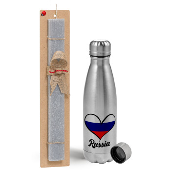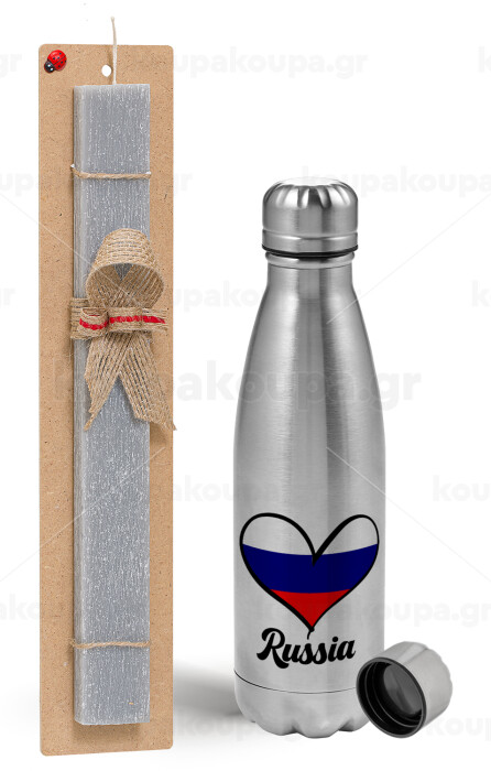 Russia flag, Πασχαλινή Λαμπάδα με μεταλλικό παγούρι Inox (750ml) & κερί αρωματικό πλακέ (30cm) (ΓΚΡΙ)