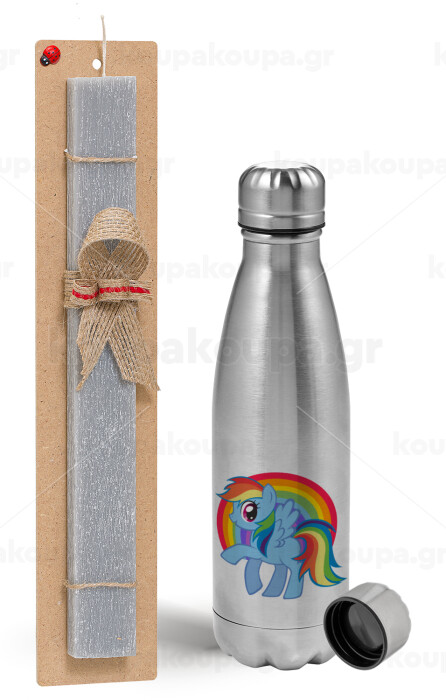 My Little Pony, Πασχαλινή Λαμπάδα με μεταλλικό παγούρι Inox (750ml) & κερί αρωματικό πλακέ (30cm) (ΓΚΡΙ)