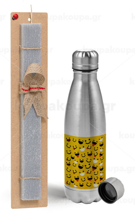 Smilies , Πασχαλινή Λαμπάδα με μεταλλικό παγούρι Inox (750ml) & κερί αρωματικό πλακέ (30cm) (ΓΚΡΙ)