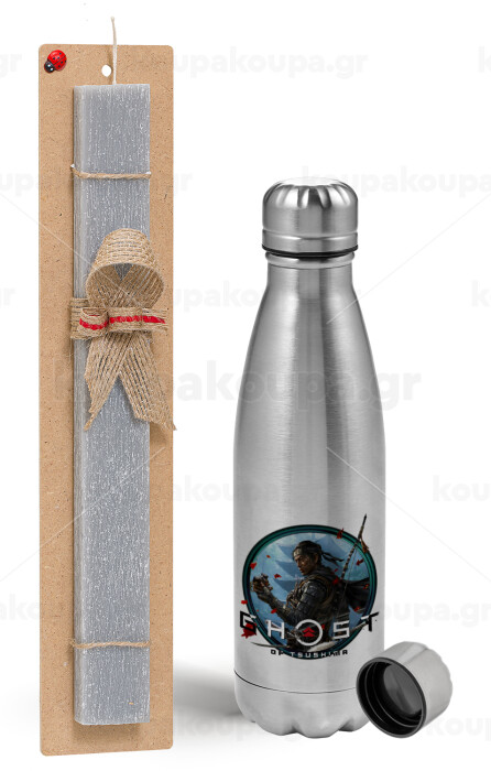 Ghost of Tsushima, Πασχαλινή Λαμπάδα με μεταλλικό παγούρι Inox (750ml) & κερί αρωματικό πλακέ (30cm) (ΓΚΡΙ)
