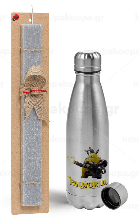 Palworld, Πασχαλινή Λαμπάδα με μεταλλικό παγούρι Inox (750ml) & κερί αρωματικό πλακέ (30cm) (ΓΚΡΙ)
