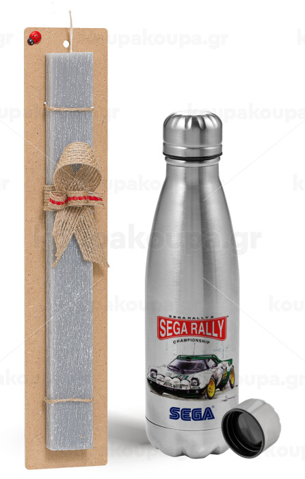 SEGA RALLY 2, Πασχαλινή Λαμπάδα με μεταλλικό παγούρι Inox (750ml) & κερί αρωματικό πλακέ (30cm) (ΓΚΡΙ)