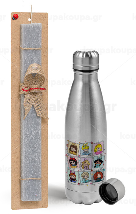 Labubu characters, Πασχαλινή Λαμπάδα με μεταλλικό παγούρι Inox (750ml) & κερί αρωματικό πλακέ (30cm) (ΓΚΡΙ)