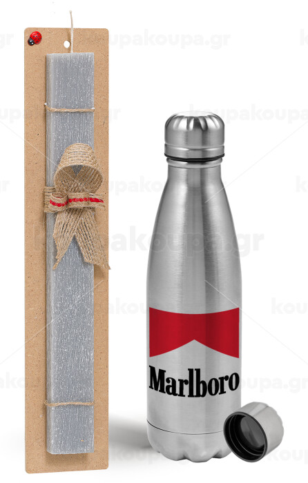 Marlboro, Πασχαλινή Λαμπάδα με μεταλλικό παγούρι Inox (750ml) & κερί αρωματικό πλακέ (30cm) (ΓΚΡΙ)