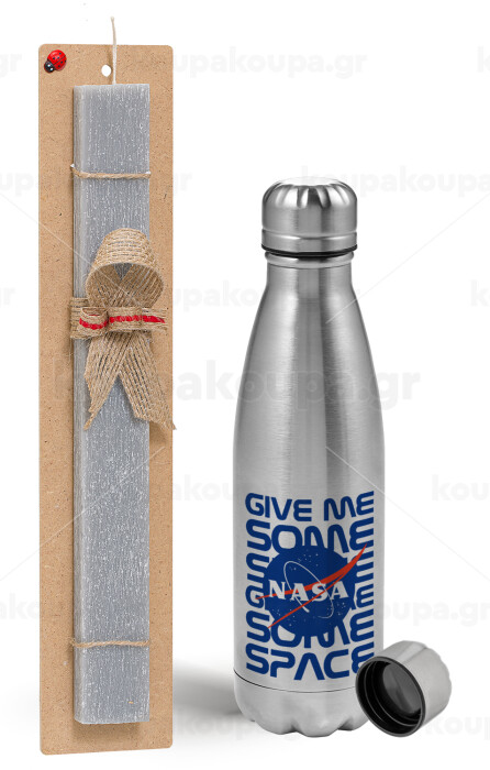 NASA give me some space, Πασχαλινή Λαμπάδα με μεταλλικό παγούρι Inox (750ml) & κερί αρωματικό πλακέ (30cm) (ΓΚΡΙ)