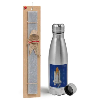 Nasa Space Shuttle, Πασχαλινή Λαμπάδα με μεταλλικό παγούρι Inox (750ml) & κερί αρωματικό πλακέ (30cm) (ΓΚΡΙ)