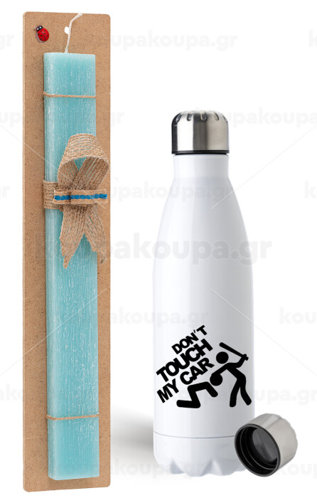 Don't touch my car, Πασχαλινή Λαμπάδα με μεταλλικό παγούρι ανοξείδωτο (750ml) & κερί αρωματικό πλακέ (30cm) (ΤΙΡΚΟΥΑΖ)
