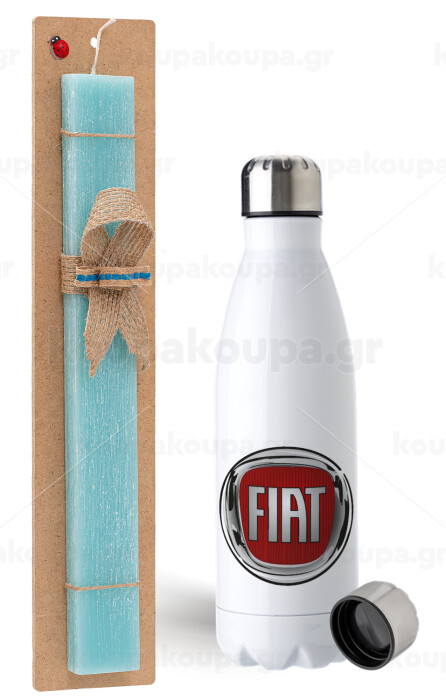 FIAT, Πασχαλινή Λαμπάδα με μεταλλικό παγούρι ανοξείδωτο (750ml) & κερί αρωματικό πλακέ (30cm) (ΤΙΡΚΟΥΑΖ)