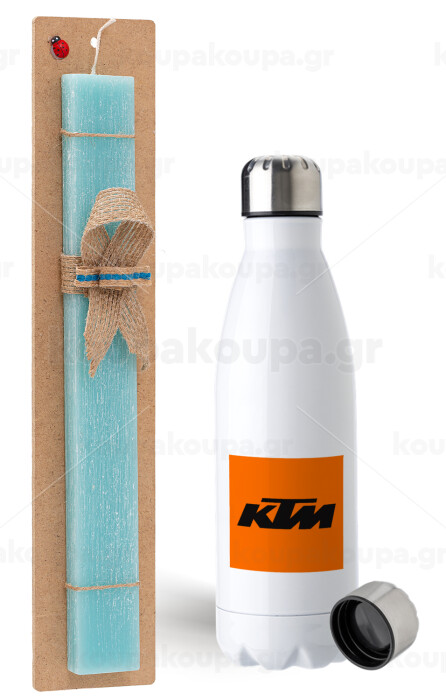 KTM, Πασχαλινή Λαμπάδα με μεταλλικό παγούρι ανοξείδωτο (750ml) & κερί αρωματικό πλακέ (30cm) (ΤΙΡΚΟΥΑΖ)