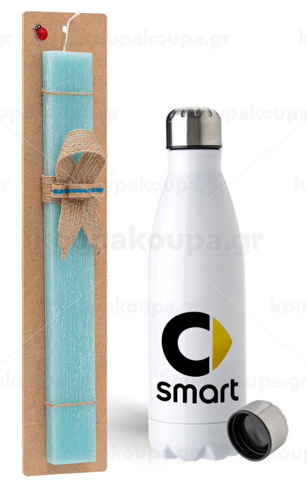smart, Πασχαλινή Λαμπάδα με μεταλλικό παγούρι ανοξείδωτο (750ml) & κερί αρωματικό πλακέ (30cm) (ΤΙΡΚΟΥΑΖ)