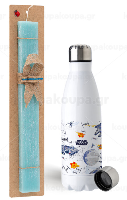 Ο πόλεμος των άστρων, Πασχαλινή Λαμπάδα με μεταλλικό παγούρι ανοξείδωτο (750ml) & κερί αρωματικό πλακέ (30cm) (ΤΙΡΚΟΥΑΖ)