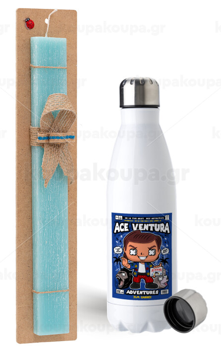 Ace Ventura: Pet Detective, Πασχαλινή Λαμπάδα με μεταλλικό παγούρι ανοξείδωτο (750ml) & κερί αρωματικό πλακέ (30cm) (ΤΙΡΚΟΥΑΖ)