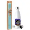Baby Yoda mandalorian, Πασχαλινή Λαμπάδα με μεταλλικό παγούρι ανοξείδωτο (750ml) & κερί αρωματικό πλακέ (30cm) (ΤΙΡΚΟΥΑΖ)