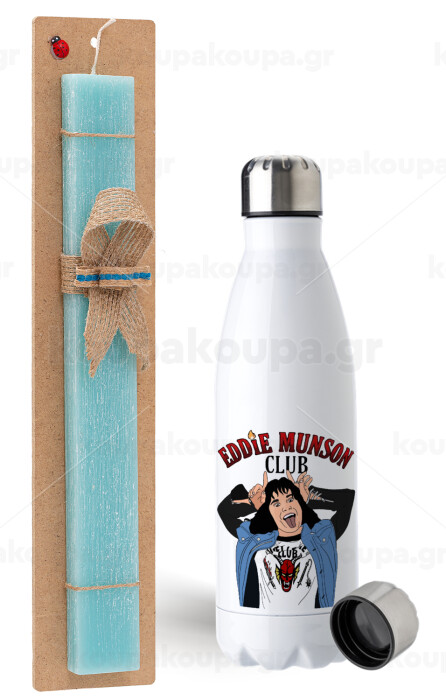 Eddie Munson, Πασχαλινή Λαμπάδα με μεταλλικό παγούρι ανοξείδωτο (750ml) & κερί αρωματικό πλακέ (30cm) (ΤΙΡΚΟΥΑΖ)
