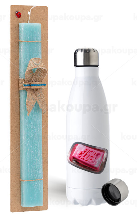 Fight Club, Πασχαλινή Λαμπάδα με μεταλλικό παγούρι ανοξείδωτο (750ml) & κερί αρωματικό πλακέ (30cm) (ΤΙΡΚΟΥΑΖ)