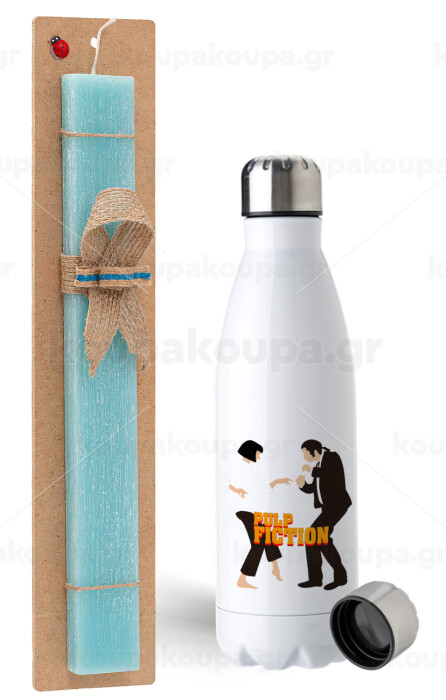 Pulp Fiction dancing, Πασχαλινή Λαμπάδα με μεταλλικό παγούρι ανοξείδωτο (750ml) & κερί αρωματικό πλακέ (30cm) (ΤΙΡΚΟΥΑΖ)