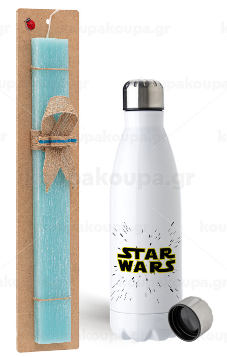Star Wars, Πασχαλινή Λαμπάδα με μεταλλικό παγούρι ανοξείδωτο (750ml) & κερί αρωματικό πλακέ (30cm) (ΤΙΡΚΟΥΑΖ)