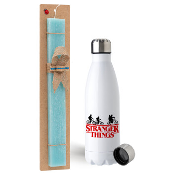 Stranger Things red, Πασχαλινή Λαμπάδα με μεταλλικό παγούρι ανοξείδωτο (750ml) & κερί αρωματικό πλακέ (30cm) (ΤΙΡΚΟΥΑΖ)
