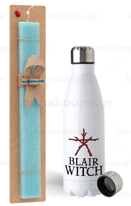 The Blair Witch Project , Πασχαλινή Λαμπάδα με μεταλλικό παγούρι ανοξείδωτο (750ml) & κερί αρωματικό πλακέ (30cm) (ΤΙΡΚΟΥΑΖ)